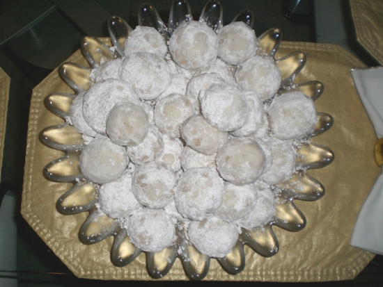 I absolutely love Mexican Wedding Cookies, but as much as I enjoy baking, I swore to myself I would only make ’em during the Holidays. Why? It’s messy!!! The confectioner’s sugar gets everywhere!!! My sis-in-law found this particular concoction, but I seem to have misplaced my copy of it. Oopsie! I like my recipe better, shhhhhhhhh. 😉