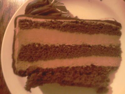 I choose the “Au Chocolate” Creamy dark chocolate mousse on a thin dark chocolate cake layer, soaked in cocoa and covered in a dark chocolate