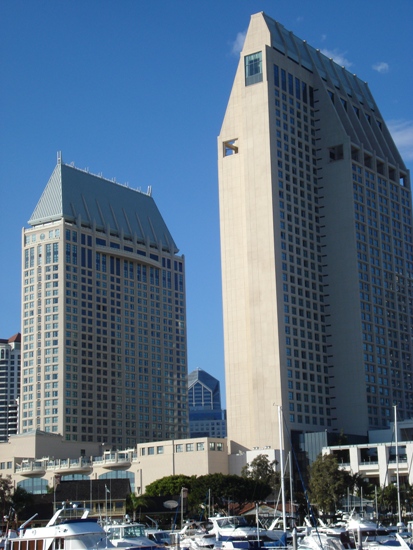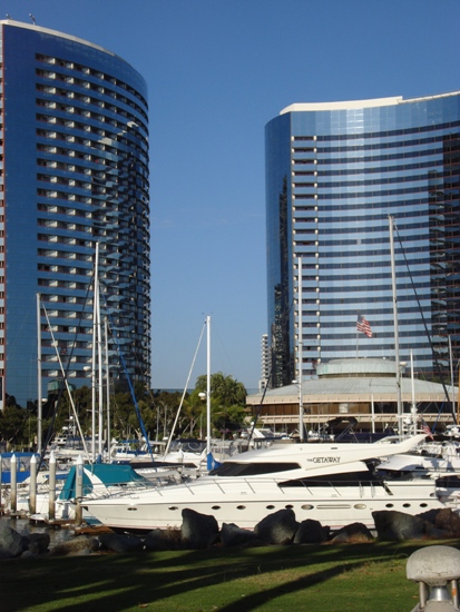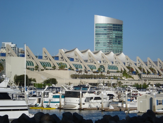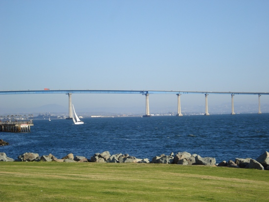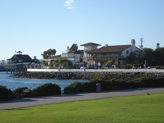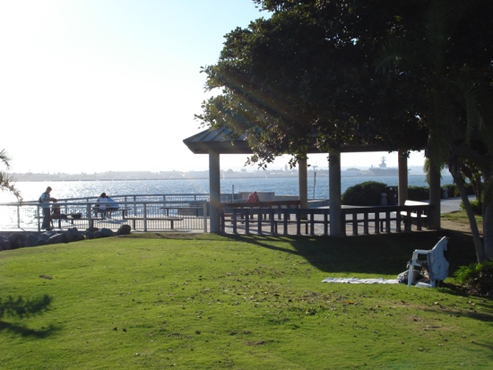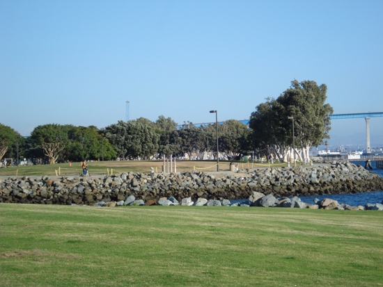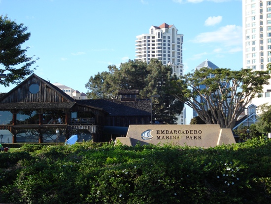 Embarcadero Marina Park is set behind Seaport Village near Downtown. Aside from being great for walking and sitting and relaxing, this Park has great views of: Coronado Bridge, boats, Coronado, Seaport Village, the backside of the Convention Center, hotels, and condominiums.