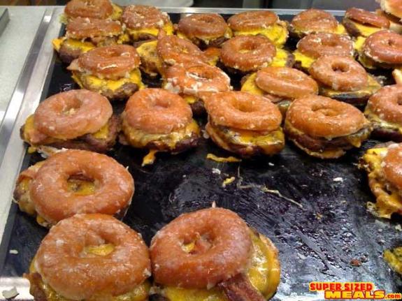 Even Paul Deen has her own burger–“Lady’s Brunch Burger”. Lordy! Here’s the video clip. Now I’m not a calories counter, I eat in moderation. (Yes, even with my obvious love of desserts, I hardly eat the stuff in one sitting unless of course I saved room). And maybe it’s just me, but there’s just something inherently wrong with eating a hamburger patty…or fried eggs… or bacon (or a combo of all three!) with a DONUT. Does anyone else see how vile this is? Before anyone says I don’t know what I’m talking about, you’re right, I don’t. I haven’t tried it. And just maybe it’s absolutely delectable. Okay, that’s it! It’s settled. If I ever come across one of these Krispy Kreme Burgers, so far only 3 places serve it (Mulligan’s Bar in Decatur, Georgia; GCS Ballpark in Sauget, Illinois; The Mallards “Duck Pond” in Madison, WI), I’ll take a bite or two… or three…and I’ll report back here! 🙂
