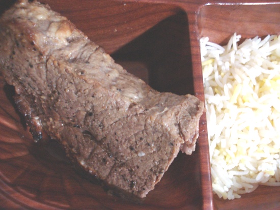 My SIL’s London Broil steaks were juicy and exceptionally good. They were served with salad and basmati rice. This was my doggy bag. The flavor still kicked butt the next day!