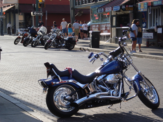 Almost forgot, Wednesday evenings through the Summer are “Bike Night”. Bikers come out to Beale to strut their goods. I left just as a few of ’em started rolling in.