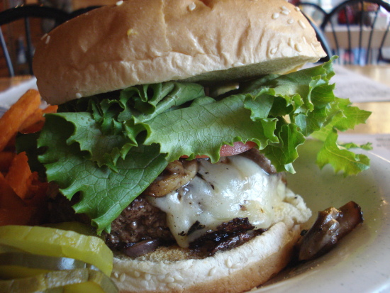 Kooky Canuck’s Mushroom Swiss Burger (& Sweet Potato Fries), from another day:
