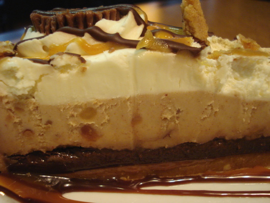 Peanut butter graham cracker crust filled with layers of chocolate ganache and fluffy peanut butter mousse topped with whipped cream and a Reese’s peanut butter cup