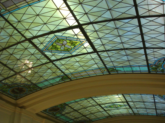 Stained glass ceiling in Men’s Bathhall