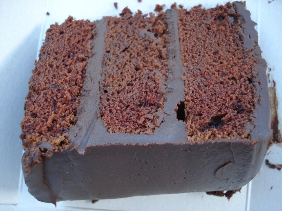 The slices are always huuuge. I “measured” it once and ’twas just shy of 3 inches (a Post-It note was my “ruler”). Its size, the moist cake layers, and the espresso in the frosting makes for incredible bites into heaven. What I wouldn’t do for a slice right now!
