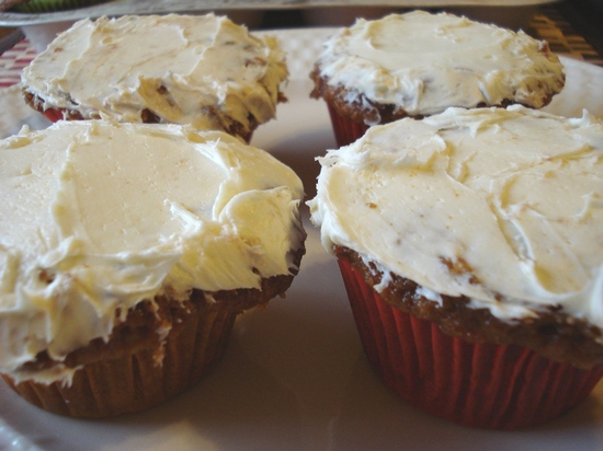 What a coincident, Audie and I made carrot cake cupcakes with cream cheese frosting on the 14th. Same cake mix, frosting by Betty Crocker.