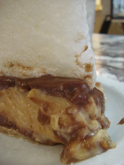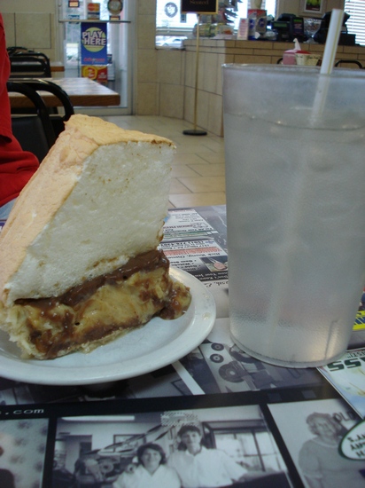 And now for what Ed & Kay’s are known for: Their Mile-high meringue pies! After an excruciating 5 minutes (mighta even been 7), I decided on their Reese’s Peanut Butter Pie. There are some things in life–like dessert decisions–that require careful deliberation y’know. :p
