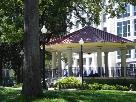 Court Square, a public park in existence since 1819, is a block east from my fave park, Confederate Park. Between Main Street (where the trolleys run) and 2nd Street, the park is surrounded by buildings, and has both a gazebo and fountain. During lunchtime in the summer, local musicians perform for the public while a hot dog vendor is also close at hand.