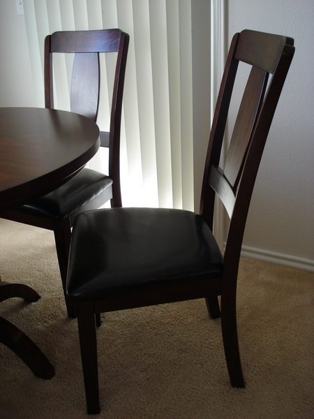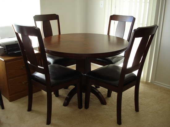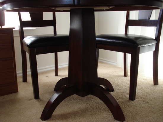 A couple of weeks after our first date, my sweetieness, Chip, went in search of a new dining set. Every so often, I tease him that he’s becoming more domesticated hangin’ with me. LOL. The table had to be no wider than 42 inches to fit in the dining/computer room. After spending a whole day fruitlessly looking (if there’s one thing I’ve learned, guys generally hate shopping), he decides to take the easy way out go online. I helped too by checking the online furniture stores in High Point, North Carolina, known as the “Furniture Capital of the World.” Turns out, the best bang for his bucks was Overstock.com and it was pretty much a toss-up between these two: