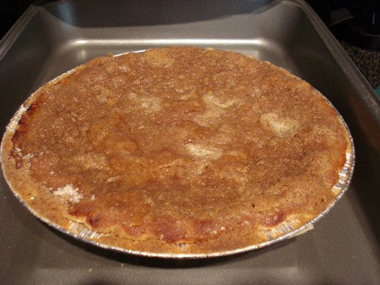 Mix all together. Sprinkle over pie. Bake at 425 degrees F for 15 minutes, then 375 degrees F for the remaining time (about 30 minutes). It’s done baking when toothpick inserted in middle comes out clean. Let cool before serving.