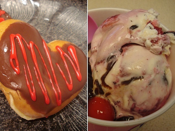 Krispy Kreme was crazy busy when Chip and I stopped in for a pair of heart doughnuts. And we also got sundaes from Baskin Robbins too (mine was Love Potion #31 with hot fudge sauce and cherries).