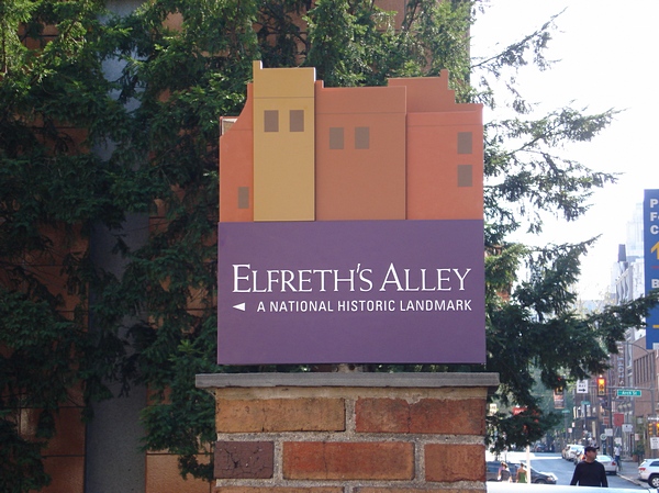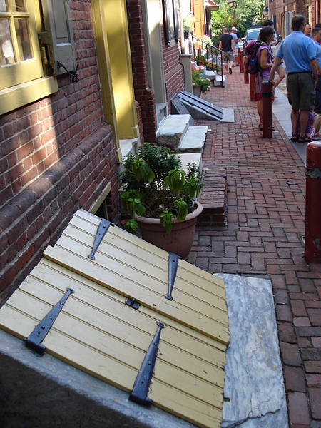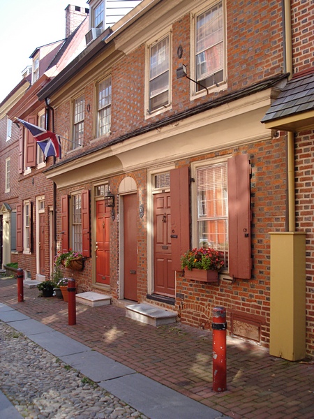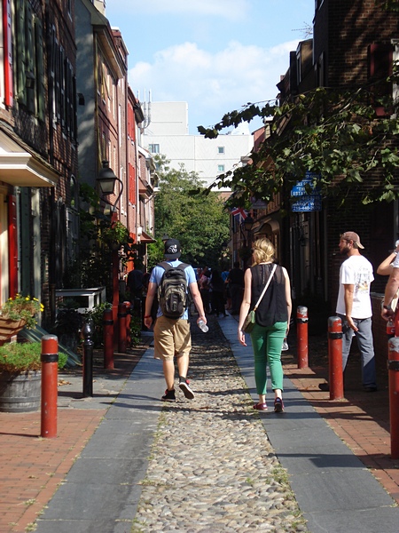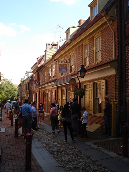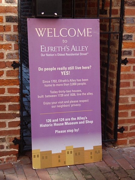 When I was planning for our Philadelphia day trip last year, this was a must-see.  Elfreth’s Alley is a cobblestone street (I’d never seen one before), and coincidentally, “Our nation’s oldest residential street”.
