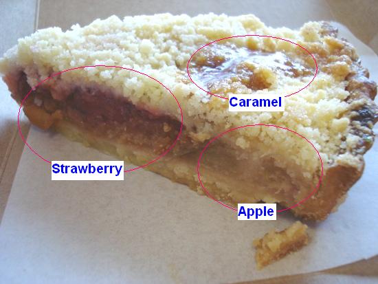 Let’s start with the Tart. You’d think with those 3 ingredients, one might distinctly outdo the other, but it doesn’t. And it’s not cavity-making sweet either. When I first read the display  sign, I thought either the strawberry or caramel would overpower the others…well, I couldn’t be more wrong.