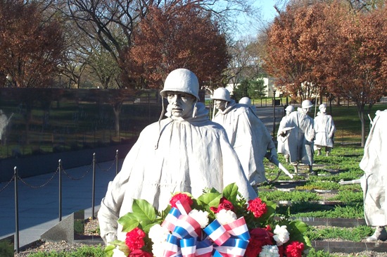 On July 27, 1995, this Korean War Veterans Memorial was dedicated to “1.5 million Army, Navy, Marine Corps, and Air Force men and women who fought in the war.”