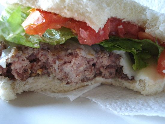 But *if* I did have access to a grill, my burgers would look like this–with the exact fixins you see here–except with hamburger buns. :p
